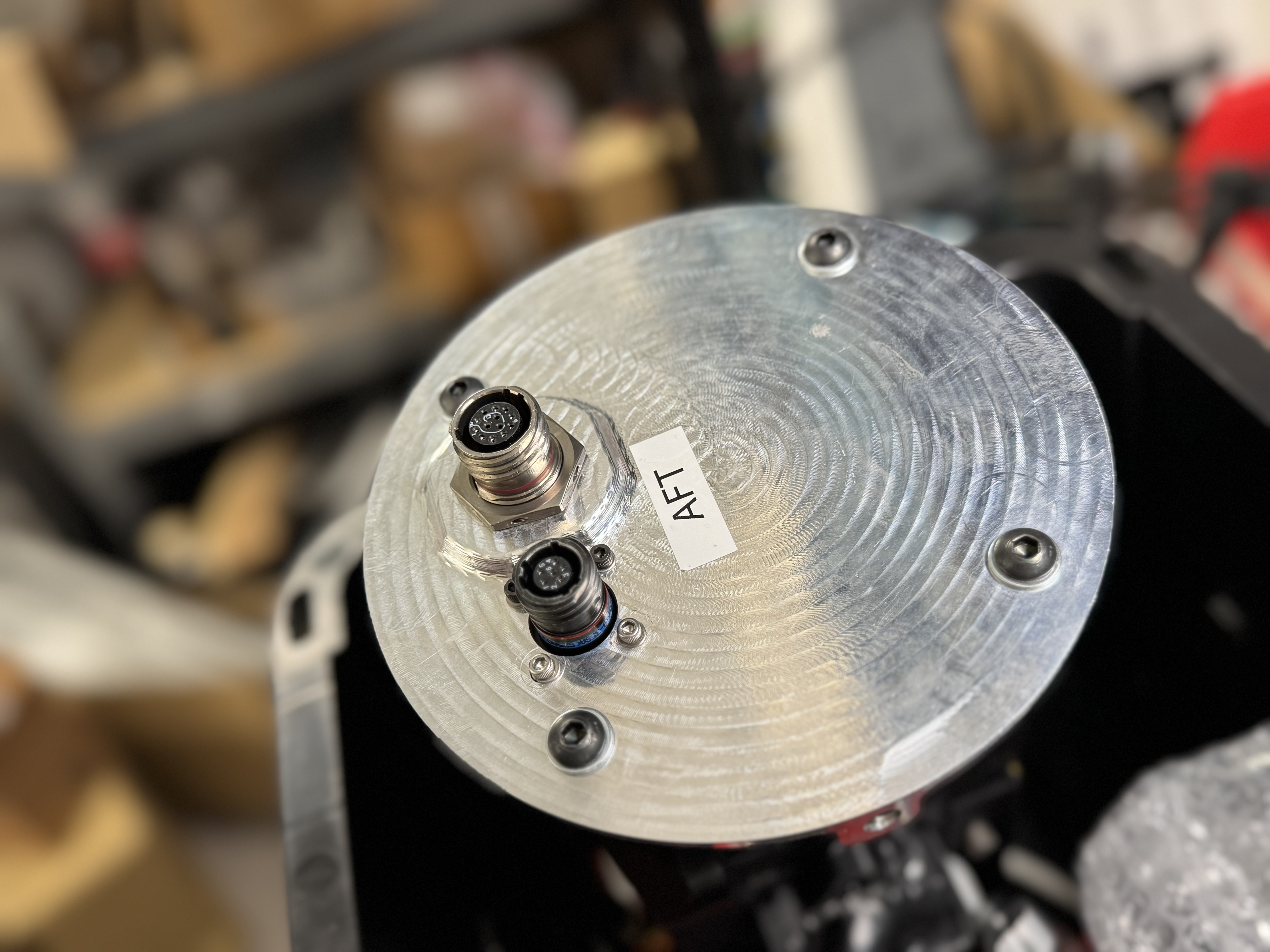 Aft avionics bay hardware post-machining. I designed this bulkhead to secureley mount our aft D38999 connectors to prevent strain on the wires.